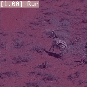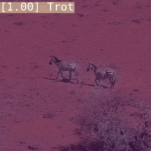 By analyzing the gradient information flowing into the final convolutional layers of the network, Grad-CAM generates a heat map that highlights the regions of the image that contribute most significantly to the network’s decision. This demonstrates here that the neural network typically prioritizes the animal in the center of the frame. Interestingly, for the Run behavior, because the animal remains in the center of the mini-scene more of the background is used to classify the movement. Also, for the Occluded category, where the animal is partially or completely hidden within the frame, the network shifts its attention to focus on other objects present.